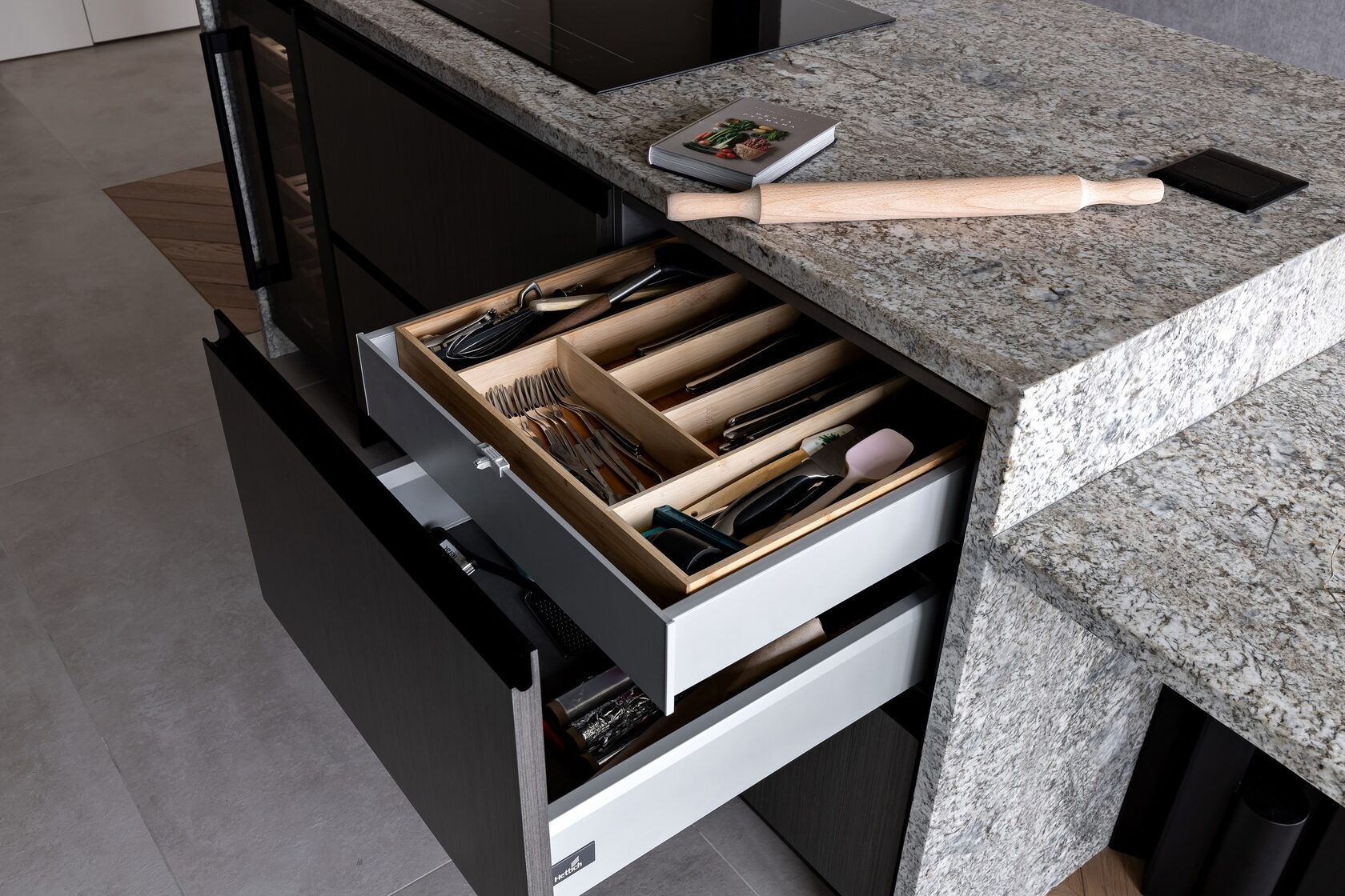 Кварцевый агломерат — топ по прочности, долговечности, устойчивости к пятнам, царапинам и кипятку. Выбор цветов — на любой вкус, от «белый как у блогеров» до «чёрный как ваша ирония». Да, это не дешёвая история, но зато столешница реально вечная. Кухни на заказ с кварцем — это когда вы забываете о проблемах с рабочей поверхностью лет на… ну, очень много лет.